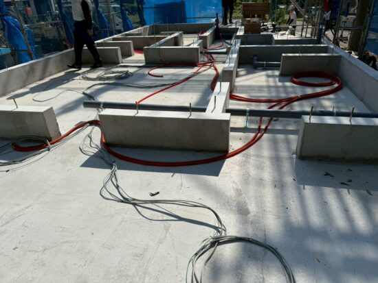 この時に外周部の型枠から、基礎内部の立ち上がり部分の型枠組まで順番に組んでいきます。