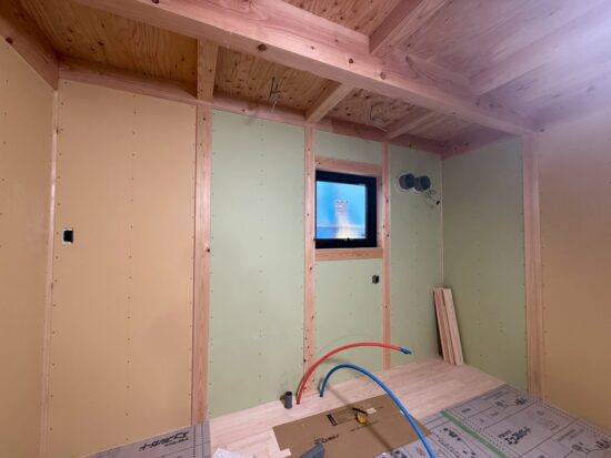 内部は石膏ボードが施工されています。